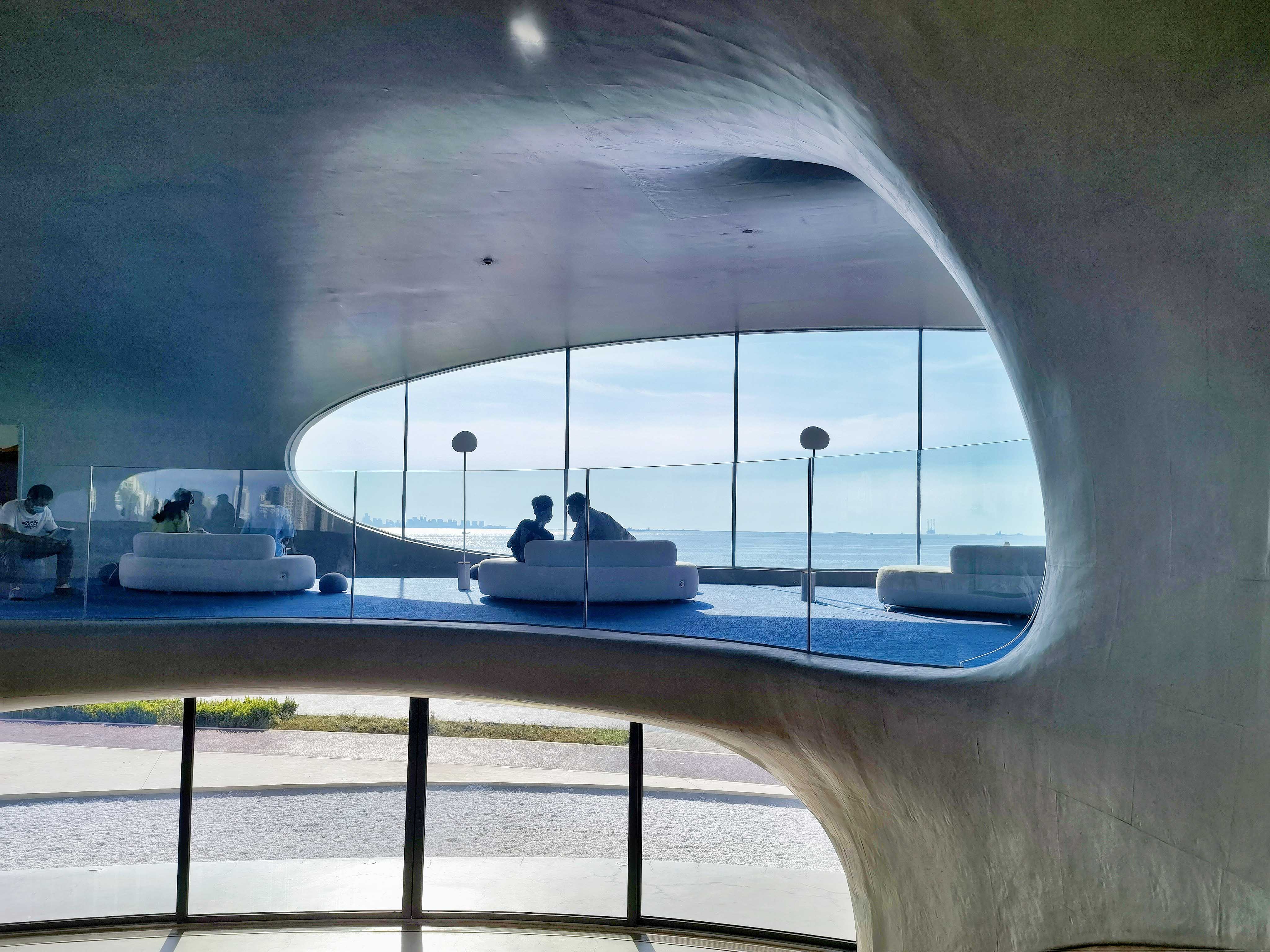 “漂浮”在海边的云洞犹如多维的时空通道,连接着城市与自然,将人们从城市中吸引进来这个“时空”之中,在绵延的海岸线中延伸着人们的想象。