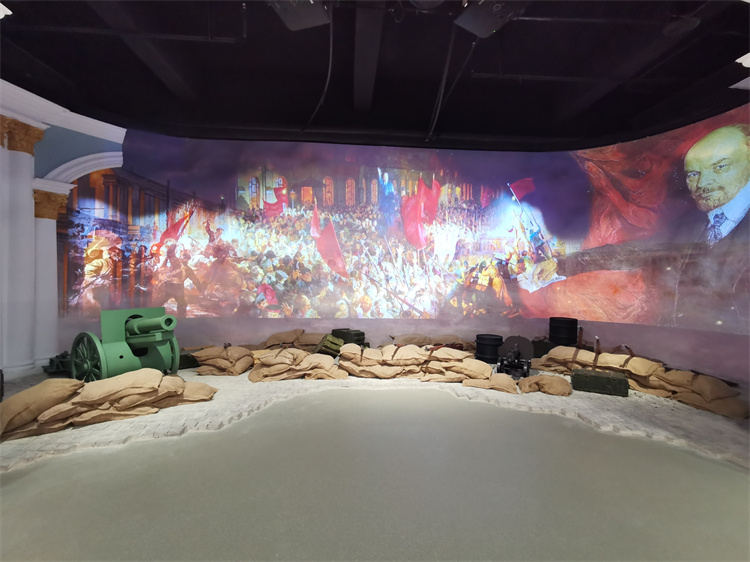 在第四展厅,借助于虚拟技术和声光电表现形式塑造的英勇悲壮的“巴黎公社革命”、惊心动魄的“十月革命”战斗场面,形成全方位的视觉冲击,让人仿佛穿越并置身历史情境,实现了“共情”与“共鸣”。
