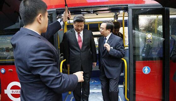 2015年10月21日,伦敦的街头下着蒙蒙细雨,国家主席习近平在英国王子威廉的陪同下,参观了全球首台纯电动双层公交大巴。在其身旁担任讲解的,是一个略显发福的中年男子,他是比亚迪的创始人王传福。