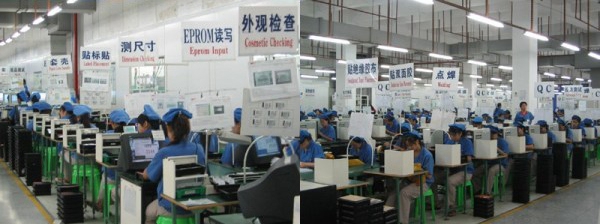 2000年,摩托罗拉代表前往比亚迪的工厂考察时,被眼前的一幕惊呆了:一条条六七十米的流水线上,密密麻麻坐着四五十名工人,每个人手里都拿着夹具,准确地完成点焊、检测、贴标签等工作。而同样的工作,在日本是全自动的,只需少数几个人。