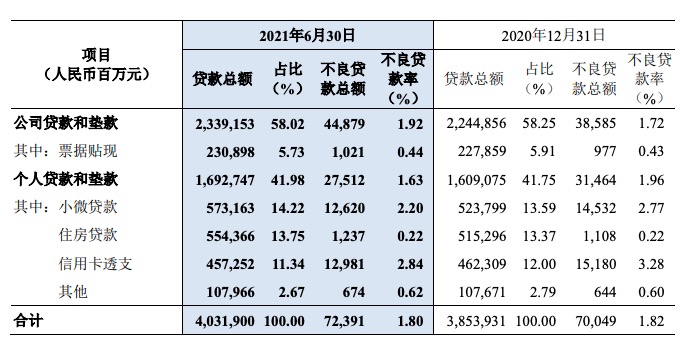 个人不良贷款总额275.12亿元,比上年末减少39.52亿元,不良贷款率1.63%,比上年末下降0.33个百分点;其中,信用卡透支项目的不良率最高,达2.84%。