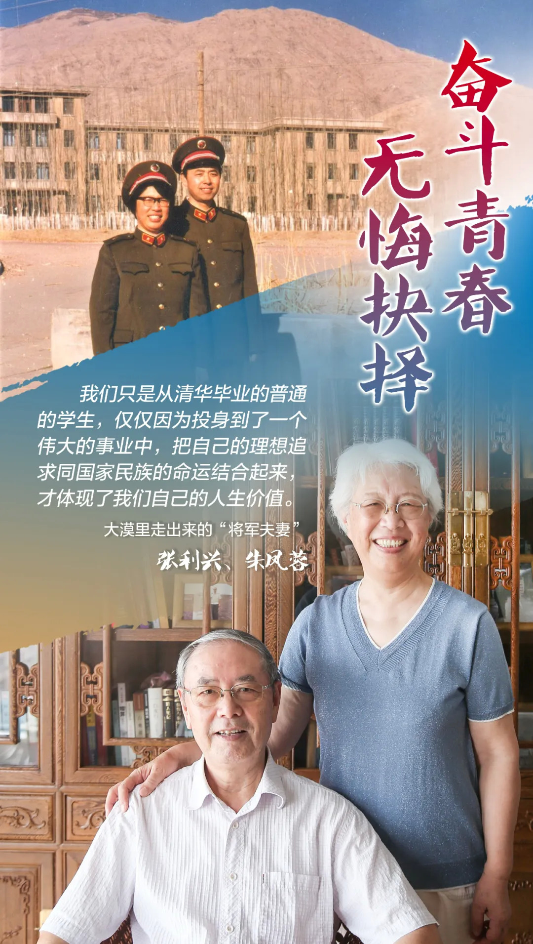 两年后,朱凤蓉从清华大学毕业,也来到这里。从此,他们在戈壁滩扎下根,成为新中国“两弹一星”事业的亲历者,成为大漠里走出来的“将军夫妻”。