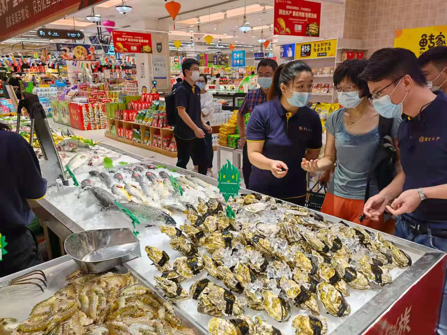 首批上架产品涵盖深海大黄鱼、大西洋鲑、生蚝、海鲈鱼、黑头鱼等深受青岛消费者喜爱的海味,工作人员对大黄鱼等产品的特点、烹饪技巧等进行了现场讲解,邀请市民品鉴试吃,并进行口味测评,现场氛围热烈,市民争相品尝、购买,放心的品质、新鲜的食材、实惠的价格,让市民朋友们大呼过瘾。