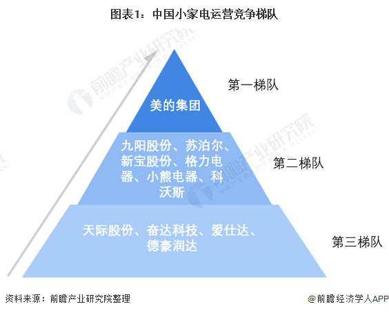 处于第一梯队的一直是美的,40%的小家电业务占据了线上线下行业前三的市场份额,其中线下份额占比近50%。除此之外,九阳、苏泊尔、新宝股份等形成了前有追兵、后有围堵的竞争态势。