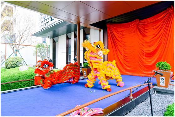 随后,精彩绝伦的舞狮表演吸引全场目光,红色和黄色的狮子外形威武,动作刚劲,引来阵阵喝彩,在热烈的掌声中,云南省房地产开发经营(集团)有限公司董事长龚云雷、云南省房地产开发经营(集团)有限公司总经理徐宇光、位领导上台为舞狮点睛,“一点天庭,福星高照,国泰民安;二点眼睛,眼观六路,鹏程万里;三点口利,笑口常开,大吉大利;四点铁角,钢筋铁骨,顶天立地;五点耳朵,耳听八方,左右逢源;六点头尾,六六大顺,由头顺到尾!”雄狮点睛龙腾生风,威武雄壮,威震八方,随后临门采青,生财利是,兴旺发达!