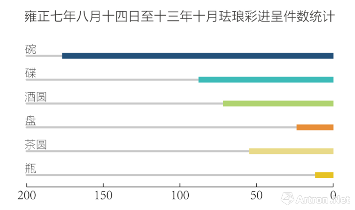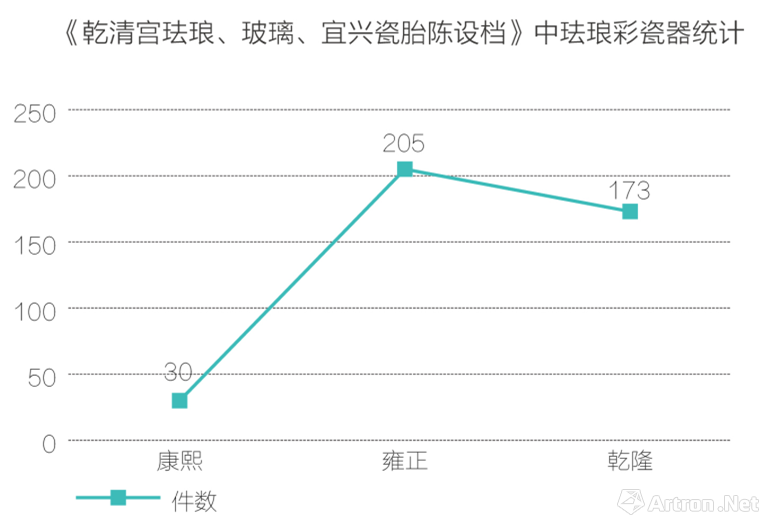 数据来源:《乾清宫珐琅、玻璃、宜兴瓷胎陈设档》统计时间为:道光15年7月11日。