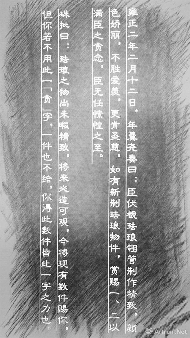 年羹尧作为雍正一朝宠臣,在当时是一人之下,万人之上。就是这样一个皇帝眼前的大红人才获赐几件珐琅彩翎管,并且大费周章。年羹尧求赏珐琅彩的奏折得以保存至今,从中可以看出,珐琅彩在当时的背景下其珍贵程度。