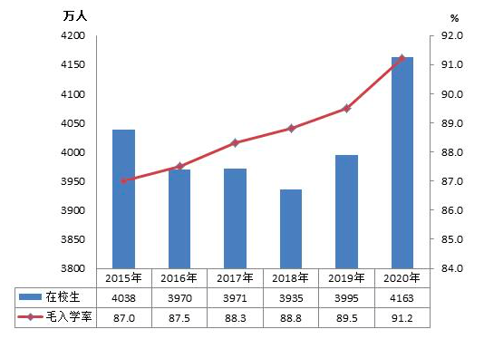 [18]包括研究生、普通本专科、成人本专科、网络本专科、高等教育自学考试本专科等各种形式的高等教育在学人数。