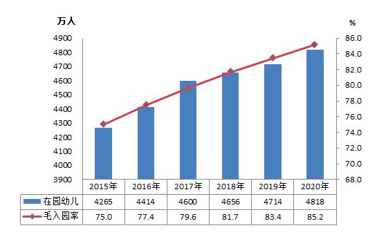 学前教育毛入园率[4]达到85.2%,比上年提高1.8个百分点。