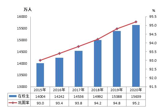 [5]九年义务教育巩固率,是指初中毕业班学生数占该年级入小学一年级时学生数的百分比。