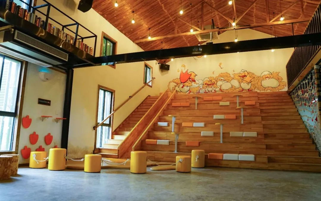 和这些村子相比,对于横港村改造的构思有一项内容值得关注,那便是对亲子活动的重视。小鸭艺术中心的核心任务,就是重塑邻里文化。艺术中心是整个横港布局的破局关键,横港的聚落结构里缺乏真正公共活动场地。对于一个以宗族观念为依托的村落体系来说,一个崭新的、更有内容的广场更容易吸引他们的聚集。