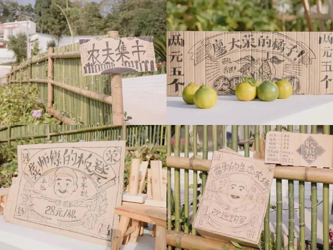 为了帮龚木匠卖凳子,几何文创孵化所和川美的研究生小伙伴们结队前往龚叔家搬板凳,并开始自主创作[农夫集市],搜集村民家可以贩卖的产物,用美术赋能乡村,为村民手绘产品海报。