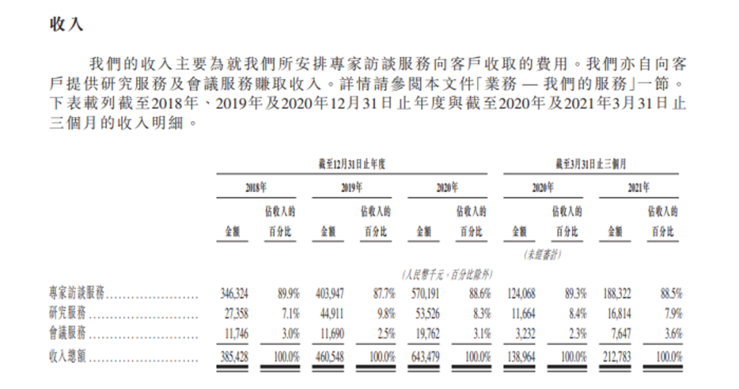 微观层面,报告期内行业专家平均每小时咨询报酬一直维持在极高水平,2018年起分别达到每小时1283.24元、1330.57元、1280.01元及1219.58元。倘若一位专家每周提供两小时咨询服务,轻而易举便可月薪上万,千元每时的诱惑力不可谓不大。