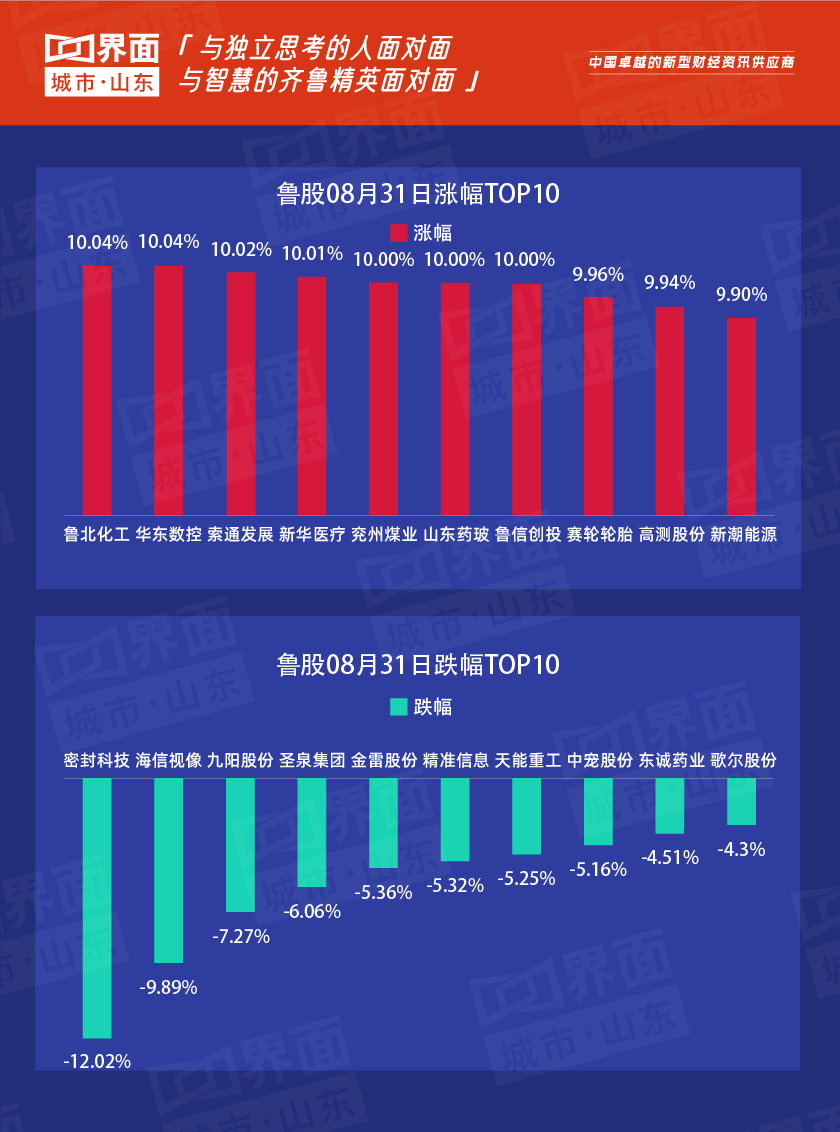 8月31日,山东126股上涨,3股持平,122股下跌。