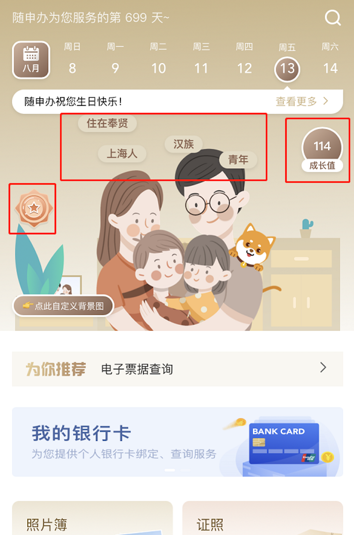 为加强市民自我信息管理,帮助市民更好地获得精准服务,享受贴心服务,市大数据中心对“随申办”“专属”空间进行了改版升级,升级后的“专属”空间不仅将照片簿、证照、个性标签等原有服务的展示进行优化,还增加了“新手引导”、专属日历中提醒证照到期、专属档案自主设置等新服务,兼具实用性与互动趣味性。