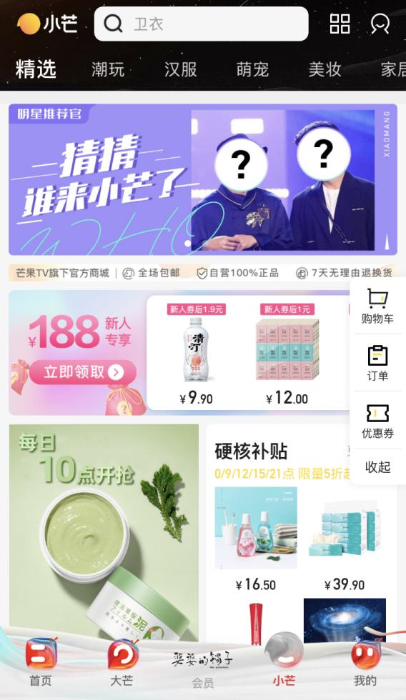打开芒果TV App可以发现,目前“小芒”的板块出现在底部五大板块之中,分为了汉服、潮玩、萌宠、密逃四个核心赛道,引进了超500个艺人和超1000位KOL进行内容种草。在芒果TV的自制剧集及综艺中,小芒电商也常常作为植入广告出现,可见其内部扶持力度。