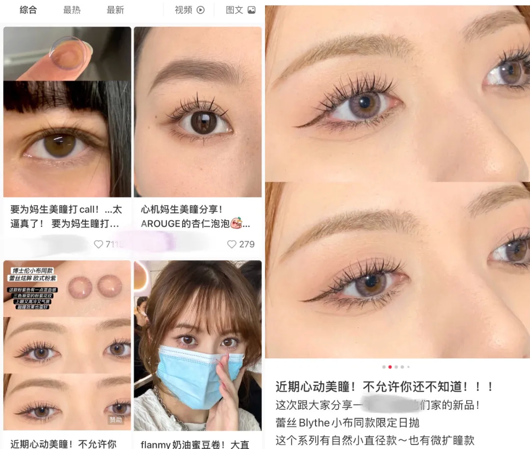 可以想象,花一个小时化妆,口罩一戴就能遮个七七八八,只露出一双眼睛,所以更多人会专注眼部的彩妆。而眼妆的带动则使化妆者会更注重美瞳的选择。