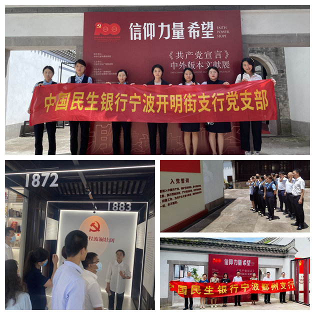 民生银行宁波分行高度重视,制订了参观计划,各党支部分批进行参观学习,做到月月有安排、季末有汇总,将《共产党宣言》文献展览活动作为党史学习教育的一项重要工作,作为学党史悟思想、加强党性修养、陶冶道德情操的重要场所,不断推动党史学习教育走深、走实。