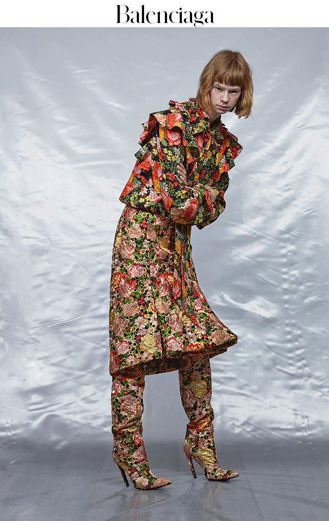 Gvasalia:绝对不是。而那个男孩,很喜欢那一身,她也是。我想说的是,今天(Balenciaga)的发布会要更困难!这些现在都是……平常的了。10 年、15 年前,这些都是不会发生的。那会是一种宣言,一种有意识的宣言,要把一条裙子穿在一个男人身上。如今就是这样一个社会。你想穿裙子?