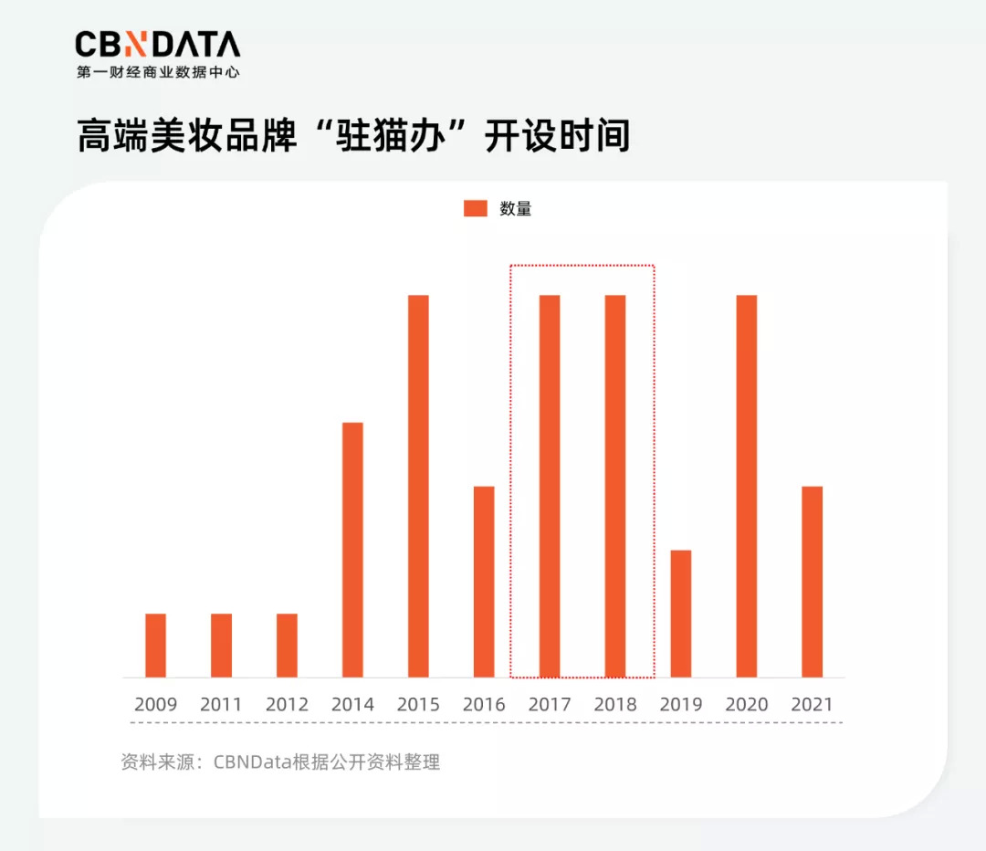 经过梳理,CBNData消费站(下称C站)将高端美妆市场按照发展阶段大致分为三个阶段,分别是2007-2017年的萌芽期, 2018-2019年的高速发展期,以及2020年至今的全面布局期。整体而言,居民整体消费水准、美妆习惯变化、渠道变革以及政策法规等因素都左右着市场的发展进程。