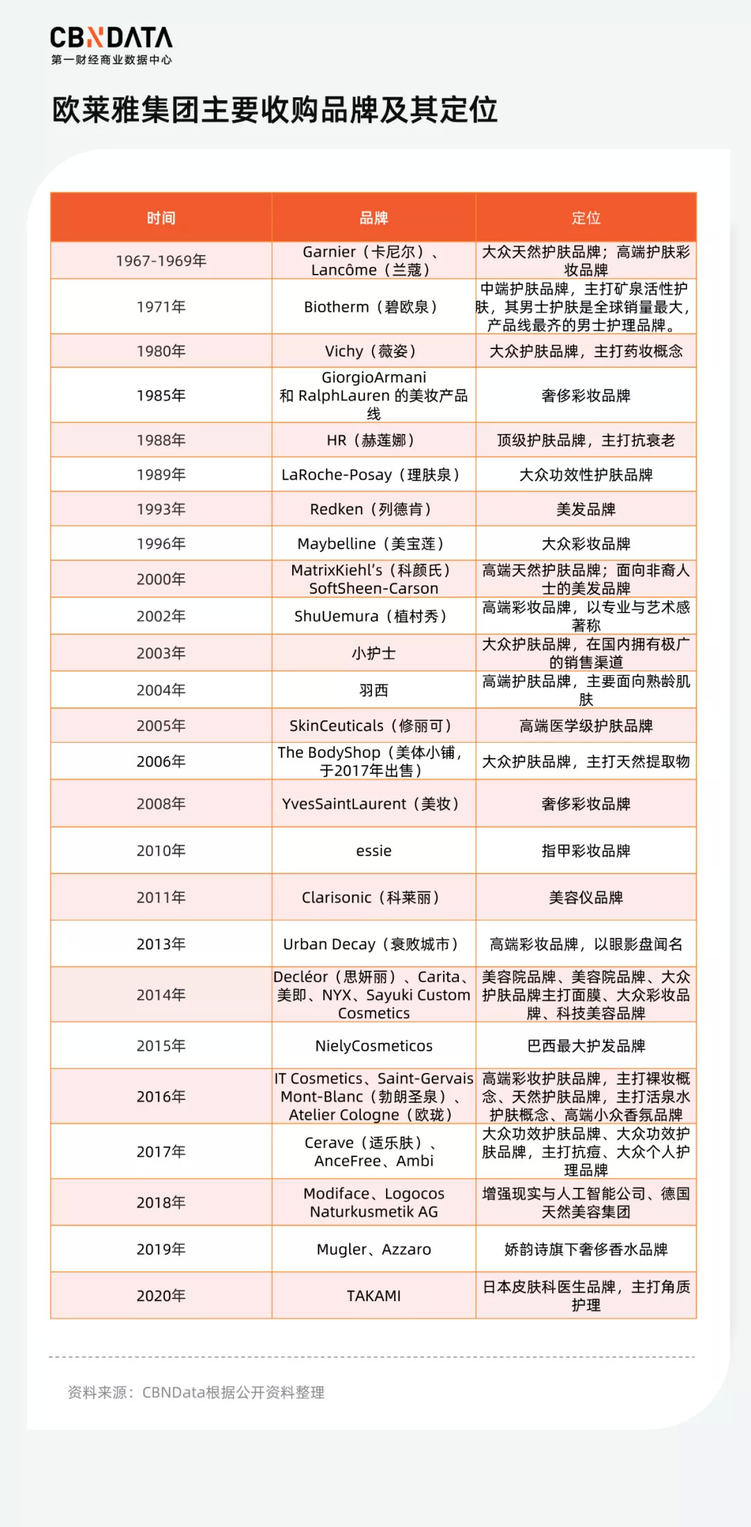 3)2020年:疫情严重冲击全球消费,美妆消费需求下滑。但受益于消费者对增强皮肤屏障、保持皮肤健康需求的提升,集团活性护肤业务营收增速不降反升,减少了集团整体营收损失。在国内,欧莱雅旗下理肤泉(1989年收购)+修丽可(2005年收购)+薇姿(1980年收购)的组合仍帮助集团占据功能性护肤品市场的领先地位。