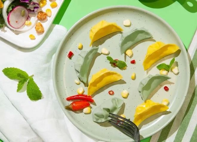 植物教授饺子产品2020年上市,目前已有芸豆玉米味、 泡菜味、藤椒麻辣味轻食饺等多个产品,共计6个SKU。