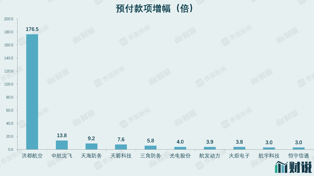 军工企业在下游获得合同负债的同时,也会向上游支付预付款项,由此形成较为健康的上下游协作资金链条,因此预付账款也可以推断其订单情况。