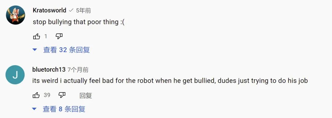 尽管机器人并没有情感和痛觉,对于这样的“欺凌”不会感到伤心或难过,但这样的画面仍然引起了一部分网友的同情,纷纷留言道:“不要再欺负那个可怜的家伙了!”“我真的为机器人感到难过。”