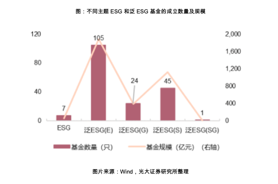 ESG基金主要分为“纯ESG基金”和“泛ESG基金”。“纯ESG基金”指投资策略中完整包含环境、社会、治理投资理念的基金;“泛ESG基金”,又称“广义ESG基金”,指未完整采用ESG投资理念,但考量了环境、社会和治理其中任一方面的基金。中国目前以“泛ESG基金”为主,占比达到了96%,其中环境相关的“泛ESG基金”占比最大,达到60%。