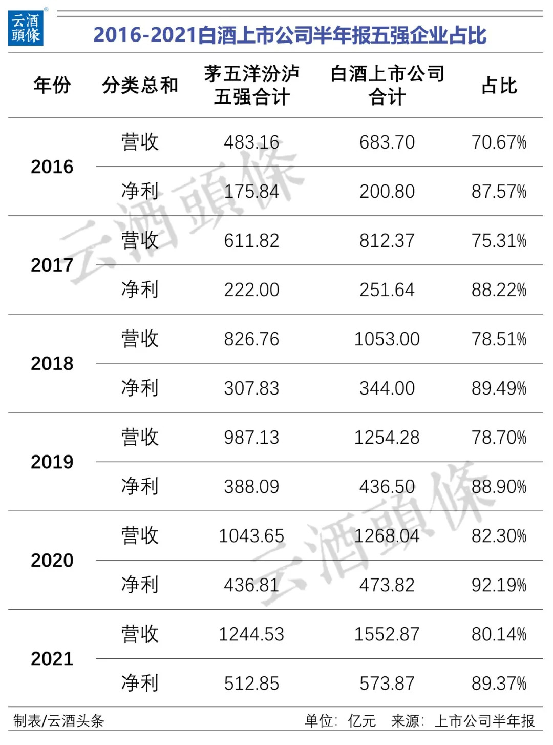 单从数据上来看,白酒五强企业撑起了白酒上市公司的一片天。