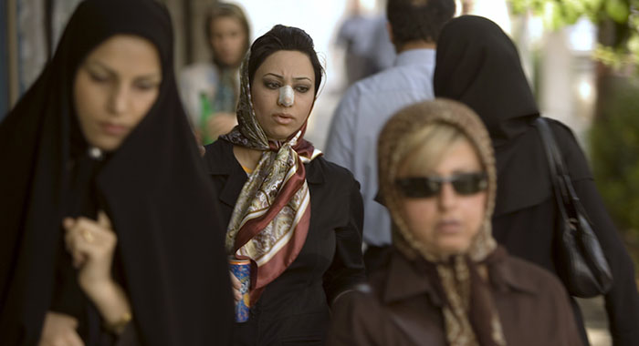 对于无法选择自己的穿着的伊朗女性而言,鼻子上贴着的纱布,就像如同时尚博主穿着的独立设计师的服装,或者是背着的一个铂金包。那是她们发出的追求时尚的宣言。