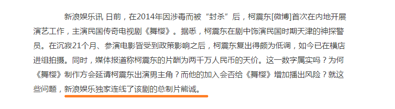 所以,这个大胆启用柯震东且至今低调不发声的投资方到底是谁呢?