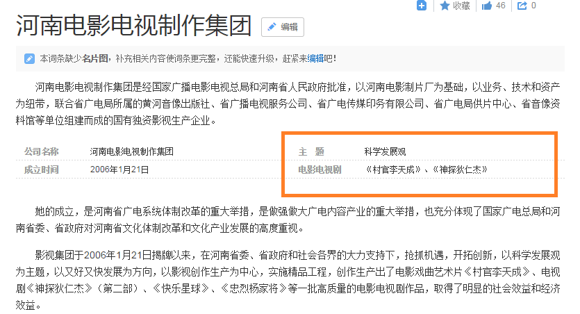 百度百科上介绍河南电影电视制作集团以往投资制作过的影片情况是这样的:
