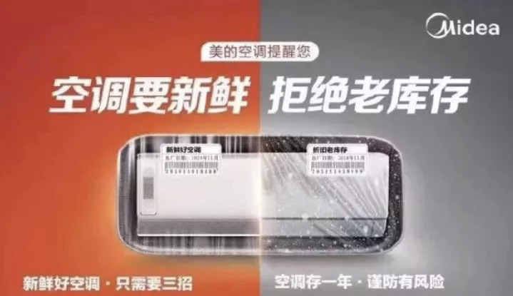 也许是董大姐给渠道压货的套路过于出名,搞得美的直接打起了“拒绝老库存”的口号,行业老三海尔也紧跟美的,发了一个耐人寻味的声明,“敬告”消费者买空调一定要看生产日期,并且用只差报身份证的方式指出: