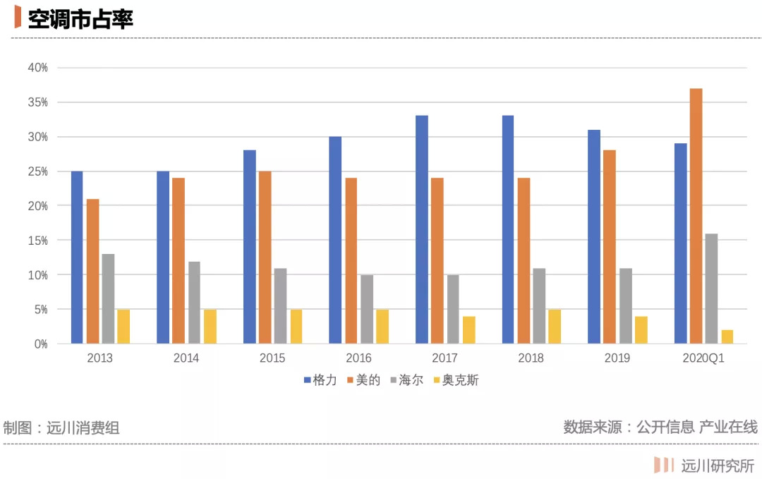 两家斗争虽然激烈,但把时间拉长来看会发现它们斗得越热闹,双寡头的格局越稳固,只要不犯错,后来者就很难有超车机会。目前格力和美的加起来市场占有率超过60%,无论是小米还是奥克斯,都很难撼动这一格局。