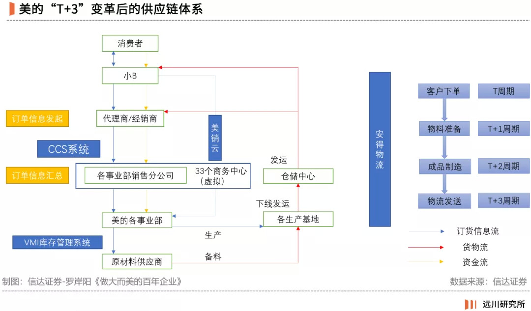 2013年之前,由于一系列利好政策的存在,大规模制造、渠道压货、淡季返利成了家电企业的制胜法宝,也是格力坐稳空调霸主的关键。但2014年后,家电补贴停止、房地产大跃进告一段落,美的内部开始反思以往的产销模式,继而在小天鹅洗衣机上推动了一次“T+3”试验。