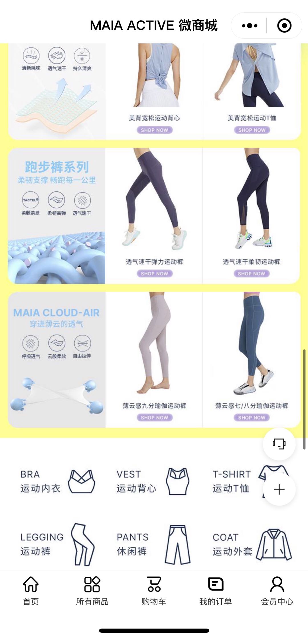 紧身裤、运动文胸、卫衣、T恤等基本款型是这些同类品牌高度重合的品类,同时,易干、抗菌、弹力等强调面料科技感的内容也是几个品牌都会强调的重点。