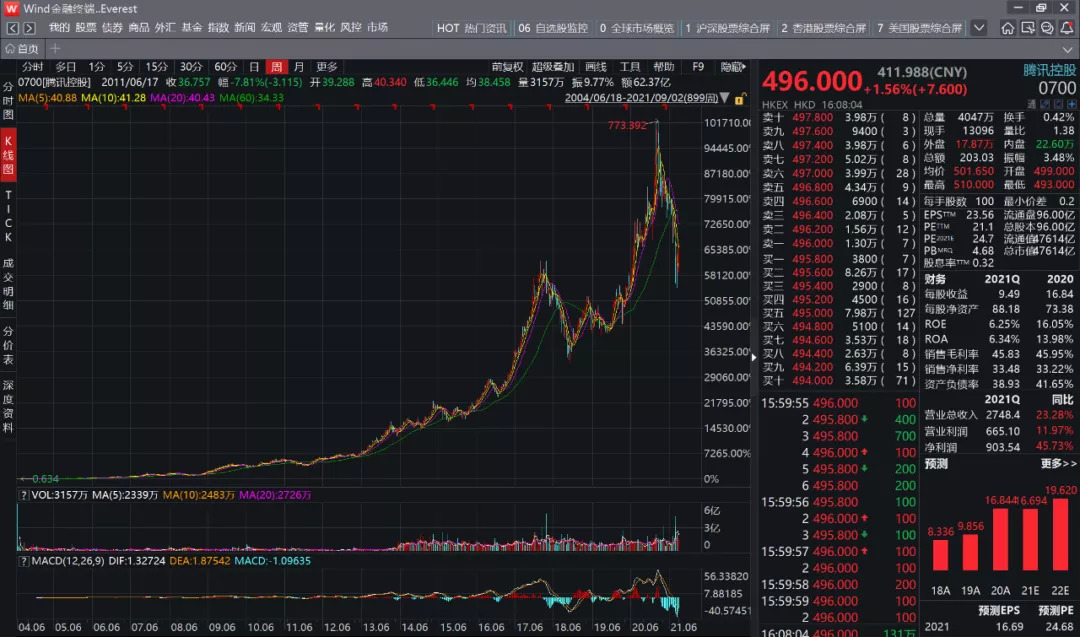 图:腾讯的周K