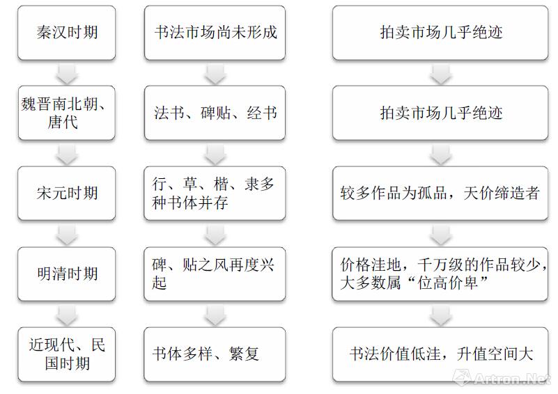 古代书法脉络与市场价值对比图: