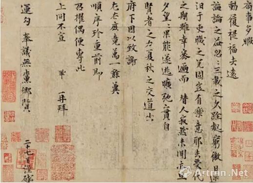 曾巩的这幅《局事帖》是“唐宋八大家”之一曾巩的传世墨迹,也是其唯一的存世作品。目前为海内外孤品,它曾经何良俊、项元汴、安仪周、王芑孙、曾燠、费念慈、许源来、张珩、张文魁等收藏,并经徐邦达先生考证和著录于《古书画过眼要录:晋隋唐五代宋书法》,朱家溍先生编写进《历代著录法书目》。2009年,《局事帖》曾以1.0864亿元成交,成为第一件破亿元的中国书法作品。时至今年,由华谊兄弟传媒董事长、收藏家王中军以2.07亿元天价竞得。