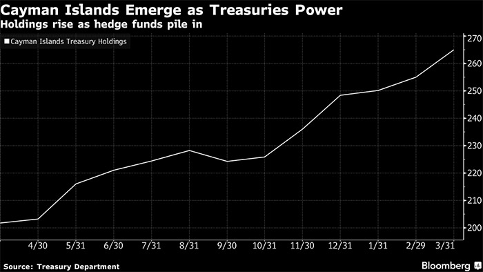 开曼群岛,这个地处加勒比海中央、深受对冲基金喜爱的金融中心,如今已是美国国债的第三大海外持有者。