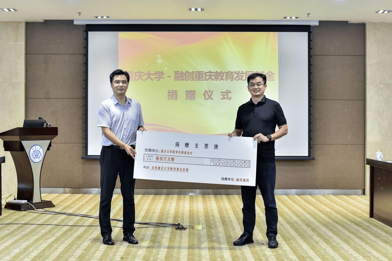 9月3日,融创重庆向重庆大学教育发展基金会捐赠300万元,设立“重庆大学——融创重庆教育发展基金”,用于支持重庆大学人才培养、学科建设、科学研究等工作,助力重庆高等教育和社会公益事业发展。