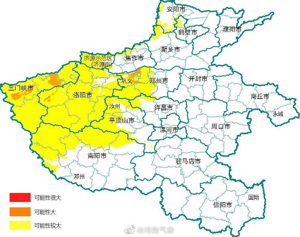 据@河南气象 ,河南省发布汛期地质灾害气象预警预报。2021年09月04日20时至05日20时,河南省地质灾害预警预报达到橙色预警的地区为:三门峡西部及中部,郑州、洛阳西部,济源南部,发生地质灾害的可能性大。地质灾害预警预报达到黄色预警的地区为:洛阳、三门峡、济源大部,平顶山西部及南部,焦作、南阳西部及北部,郑州、安阳、鹤壁西部,新乡、许昌西北部,发生地质灾害的可能性较大。