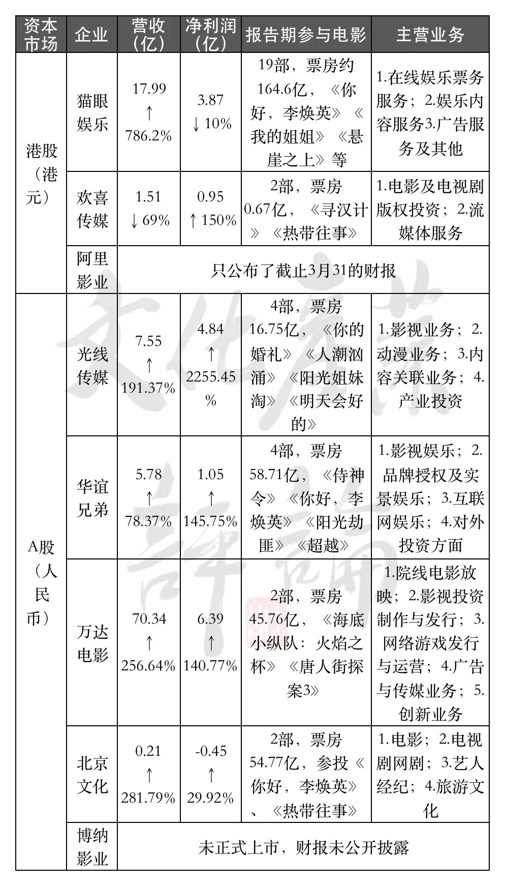 从万达、华谊与光线、博纳的对比就可以看出,电影产业的核心还是在内容生产。欢喜传媒能够在短时间内崛起、光线能够度过多重危机、博纳在影视寒冬和严厉监管下能通过IPO,这些都是专注优质内容的回报。