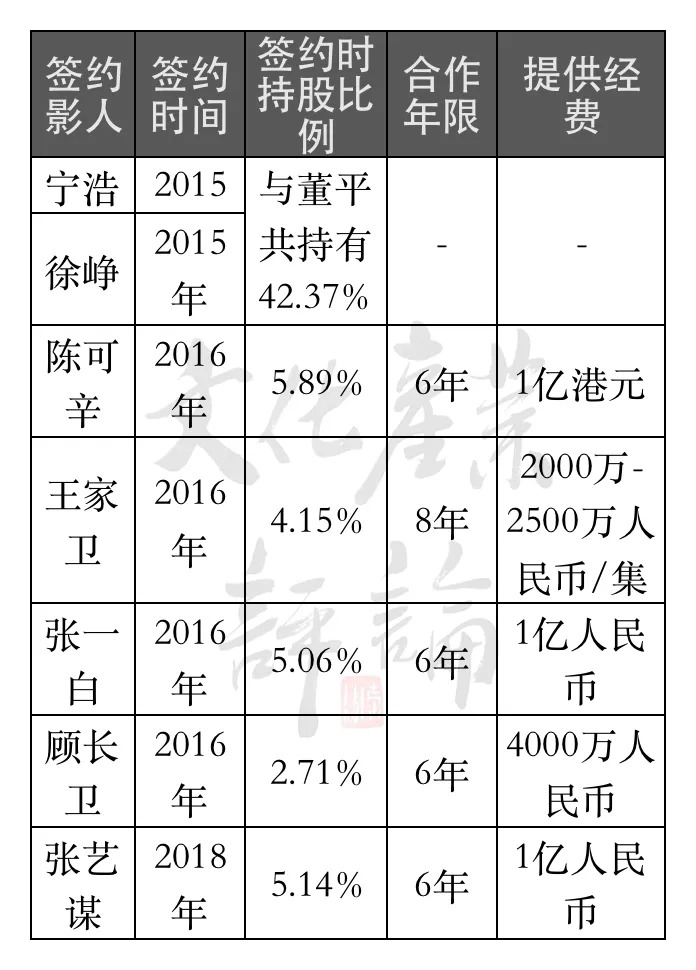 但创立之初,欢喜传媒就复制了华谊的成功模式。即通过资本将名导的才华、名气和公司绑定在一起。七年来,通过分享上市公司股权、提供创作资金等,欢喜传媒深度绑定了徐峥、宁浩、陈可辛、张艺谋、张一白等大量头部创作者。这种模式下,一是年生产量大幅提升。二是出品了《我不是药神》《夺冠》《疯狂的外星人》等高质量影片,让欢喜传媒迅速跻身头部电影企业行列。