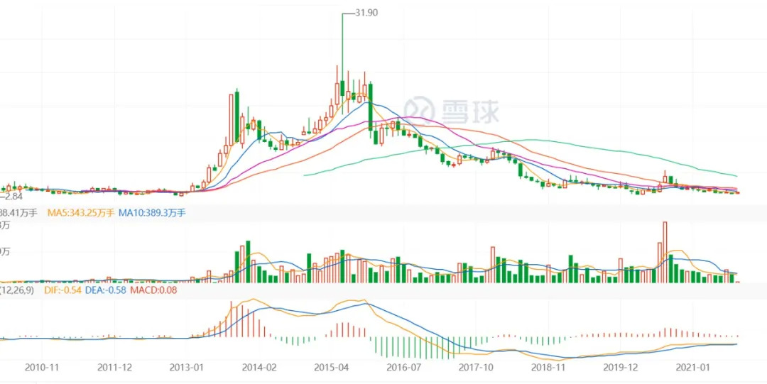 △2010-2021年华谊兄弟股价走势图(注:来自雪球网)