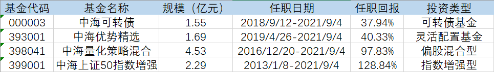 9月4日,中海基金发布公告,称中海可转债、中海优势精选等4只基金均更换基金经理。原基金经理彭海平因个人原因离职。