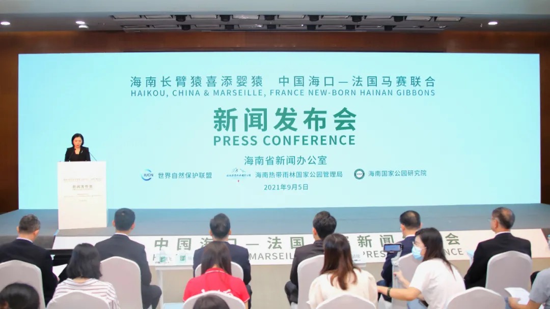 9月5日恰逢世界自然保护大会在法国马赛举办,当天举办的发布会采取线下线上结合,国内嘉宾在海口新闻发布现场内,与马赛现场及其他线上参会嘉宾实时连线,同步发布海南长臂猿保护模式报告和新添婴猿的相关情况。