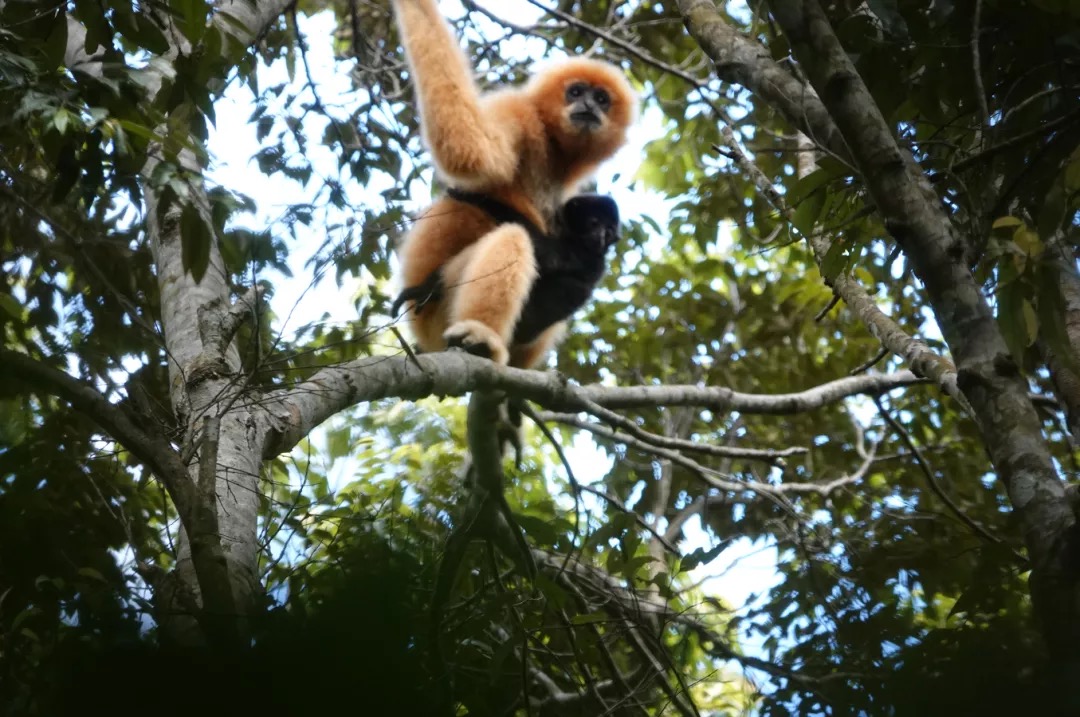 此前,2020年8月29日,海南热带雨林国家公园管理局监测队员在白沙县境内的东崩岭进行科研监测时,发现E群(第5群)的母猿怀抱一幼崽。“去年8月份出生的一只婴猿和今年出生的这两只婴猿,表明海南长臂猿繁殖状况良好、海南长臂猿的生存环境和生存状态在稳步改善、海南热带雨林等自然生态空间得到修复和扩大、建设人与自然和谐共生的现代化是切实可行的。”黄金城说,海南热带雨林国家公园把海南岛95%以上的原始林、55%以上的天然林以及生态区位中最重要的区域划为试点区,把加强海南长臂猿研究保护作为国家公园体制试点的重中之重。经过3年来国家公园体制试点和建设,充分证明设立海南热带雨林国家公园有利于海南长臂猿的种群恢复,有利于海南热带雨林的系统修复,有利于海南生态环境的持续向好。