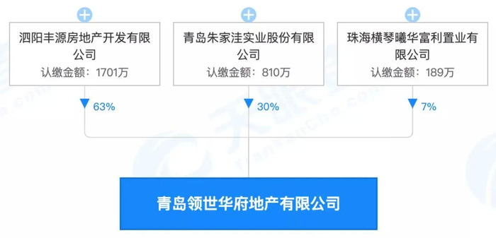 据天眼查,青岛领世华府地产有限公司属于泗阳丰源房地产开发有限公司旗下,而泗阳丰源房地产开发有限公司是由佳源国际控股(珠海)集团有限公司100%控股。